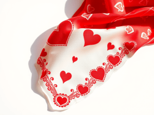 Quickly, I thought of my vintage handkerchief collection, so I started there. They all looked very old-fashioned, too much so for a younger modern woman, except for one. It was bright and beautifully decorated with hearts. I was confident it was right to give as her gift.