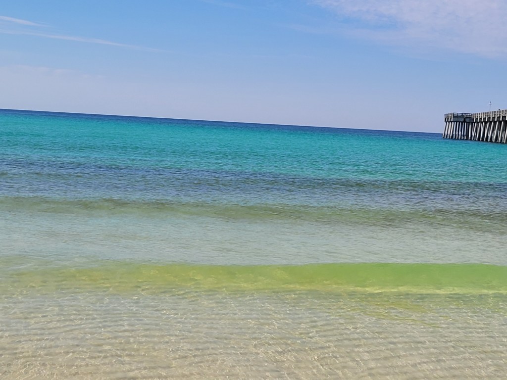 It appeared that I walked unaccompanied on the beach; my husband found relaxation in his preferred spot… the shade. As I have frequently done in the past, I offered to take pictures of those I passed by so they could have a better shot of themselves together, including the various hues of aqua, turquoise, and deep ocean blue of the water and the skies above. Frequently, their pet was included, as we were in a section where dogs were welcome. I wondered what Howie would have thought of the ocean and sand. For a moment, I felt a wave (no pun intended) of sadness and longing for my pup. Again, I brought my thoughts into focus.